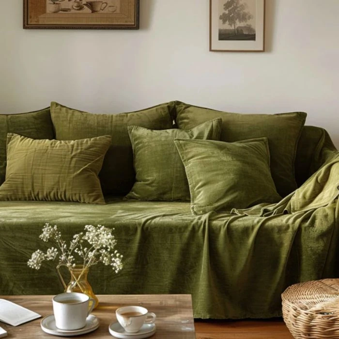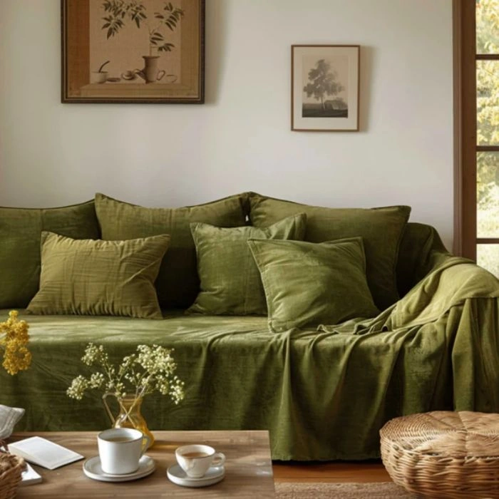 Luxurious Green Velvet Sofa Cover
