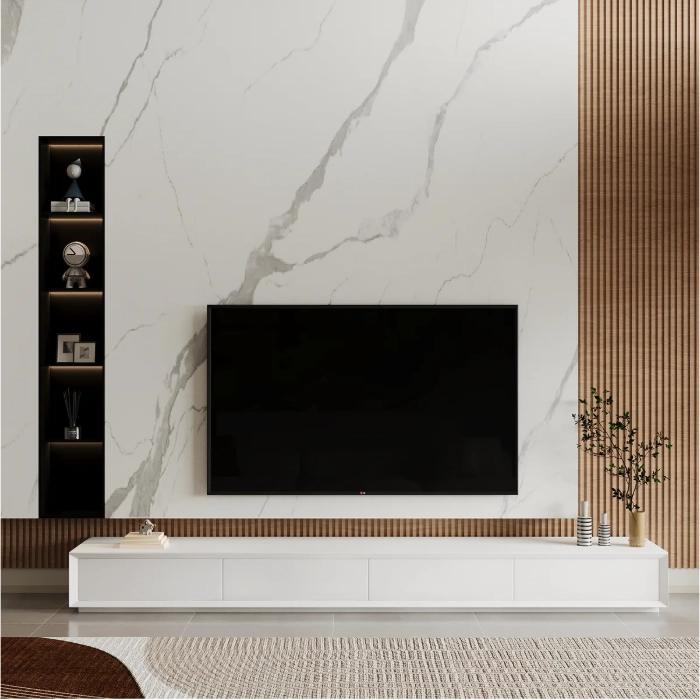 At Fixit Design, we view Solano TV Unit as not just a television stand, but as a statement piece, enhancing any entertainment area. It provides ample space for electronics, yet also allows the decor of the room to shine through. The Solano tv unit effortlessly provides an orderly, clean and trendy lounge style.